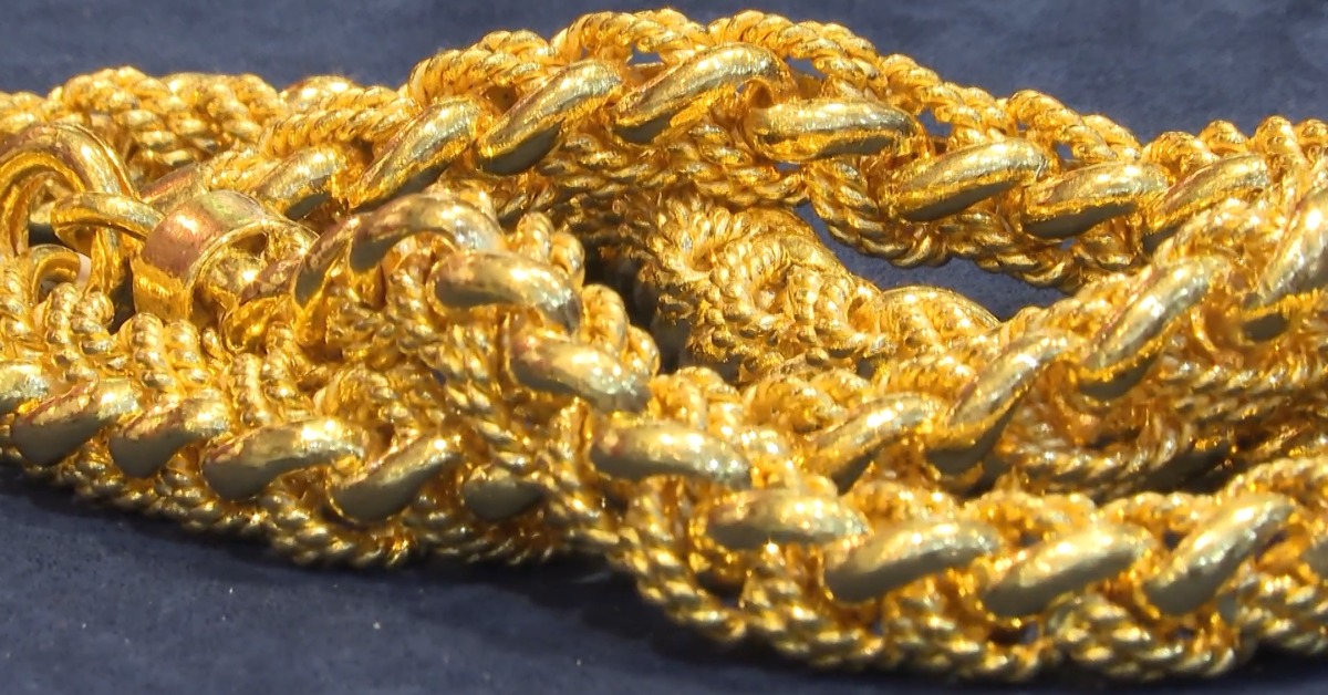 小小金塊閃閃發光,價格不斐。銀樓業者:「這是一兩12萬7。」