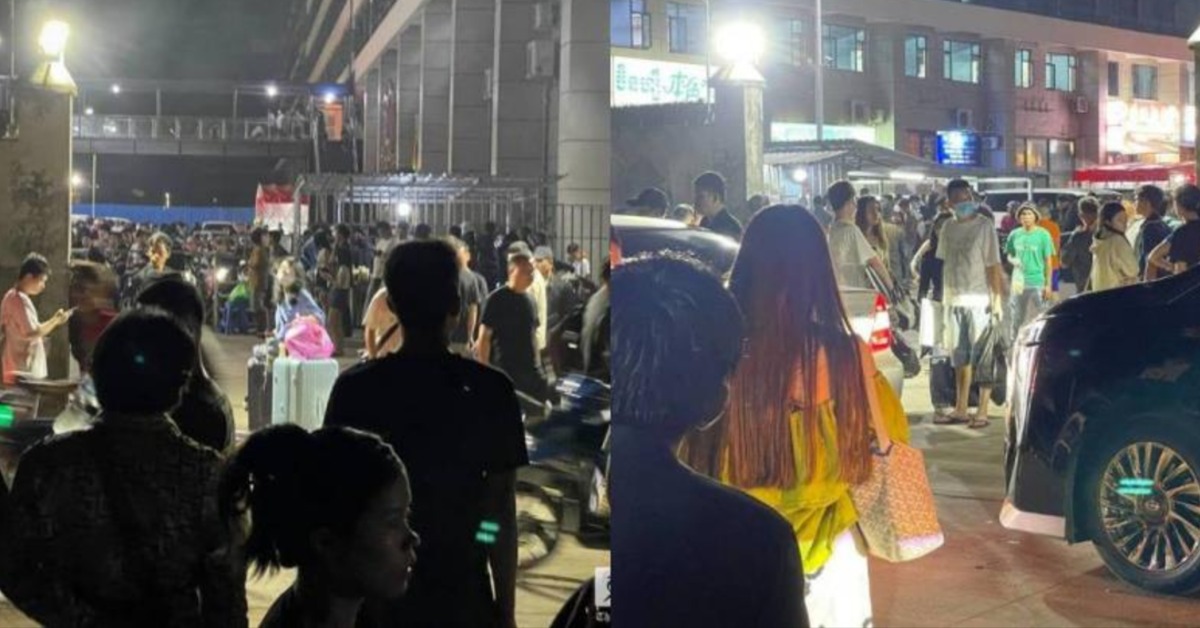 柬埔寨西港,中國城園區外,擠滿大批外籍員工場面混亂,鄰近道路,還有許多人大包小包推著行李不斷往外走,大巴士嘟嘟車全都來了,要把員工給載出去,15日晚間11點,中國城園區內多家公司突然宣布解散,上千名外籍員工臨時被通知匆忙離開,當中不乏許多中國籍人員,搞到所有公司都要撤離,疑似是為了避風頭。
