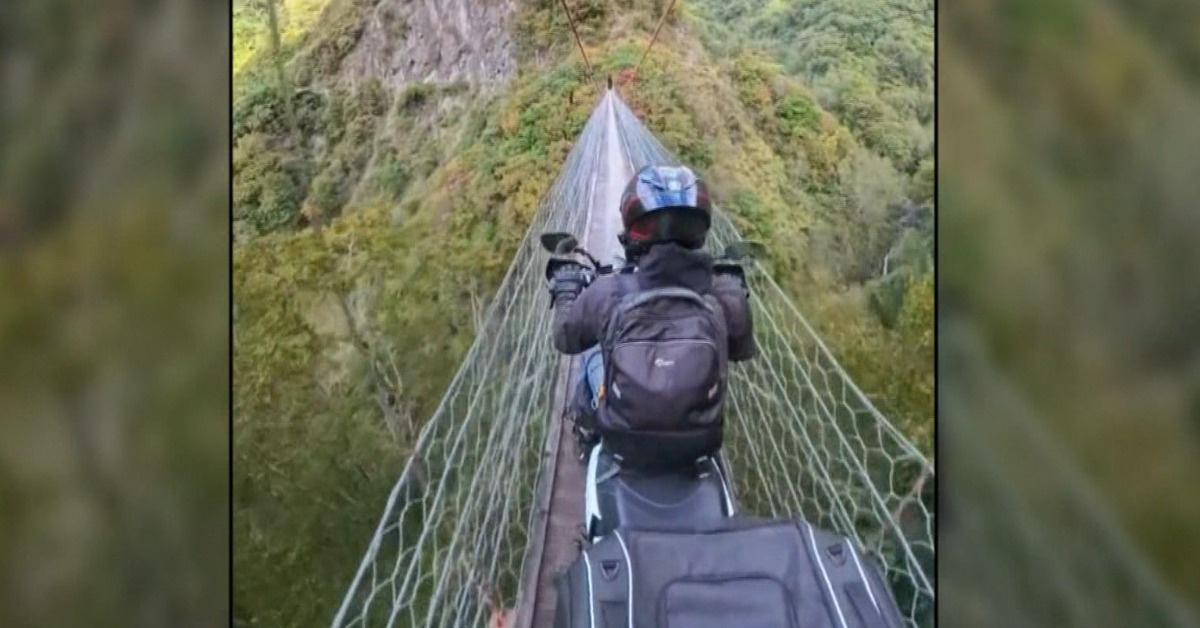 獨家/近知名「紅香溫泉」!重機騎士上「力行吊橋」險象環生