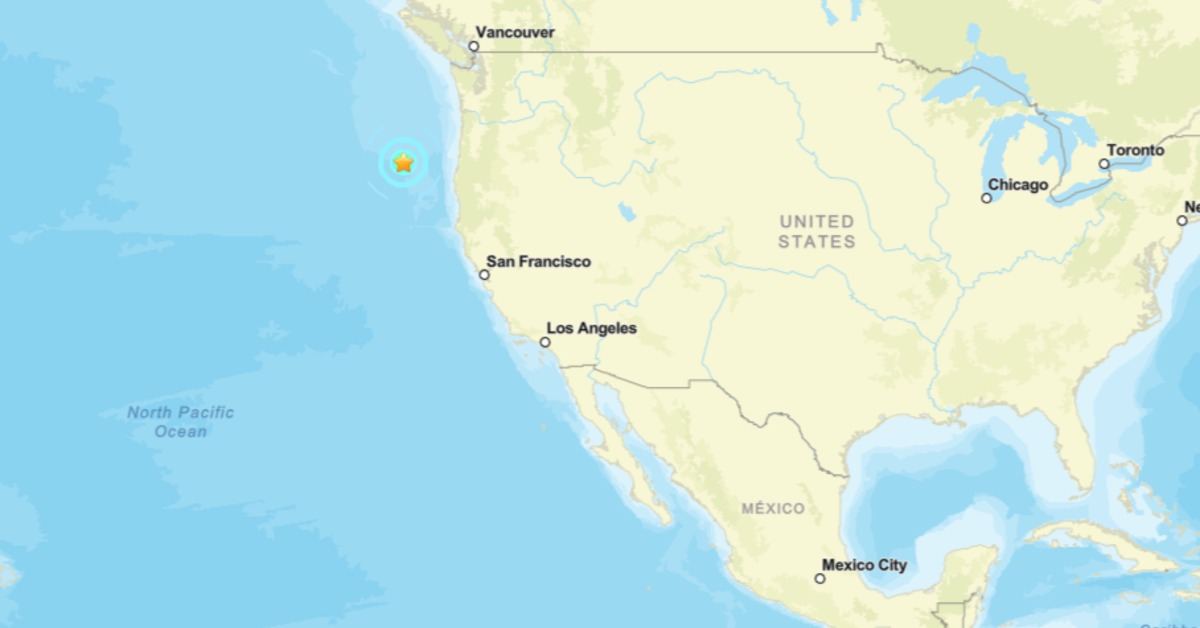 美國地質調查局稱,地震發生在太平洋時間15日晚上7點25分,震央位於奧勒岡州班頓(Bandon)以西186英里(約299公里),塞勒姆(Salem)以西約261英里(約420公里),震源深度 4.4 英里(約7公里)。