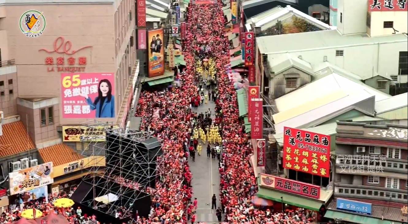 白沙屯媽祖結束短暫休息後,在萬人空巷街道緩緩走向北港朝天宮,沿途不斷傳來信眾「我愛媽祖」、「媽祖我愛你」歡呼聲,場面溫馨又熱鬧。而從空拍畫面視角,可見原本幾乎6車道寬的街道,被滿滿的信眾佔據,畫面相當震撼。