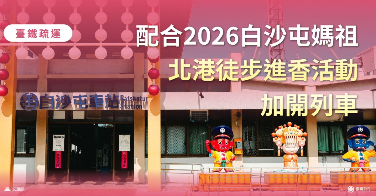 臺鐵公司配合「白沙屯拱天宮媽祖北港徒步進香活動」,將於115年4月11、12、13、18、19、20日(6天)加開區間(快)車160列次。