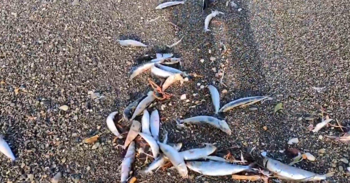 日本青森外海8號發生7.5強震,有日本網友表示,自己在北海道一處海灘上看到成群的沙丁魚被沖上海灘,,問大家是否和地震有關?