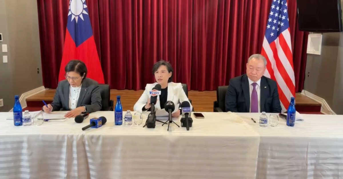 行政院副院長鄭麗君、政務委員楊珍妮及駐美代表俞大㵢於臺灣時間16日上午9時,在駐美代表處正式舉行記者會,針對臺美關稅談判結果向國人報告。