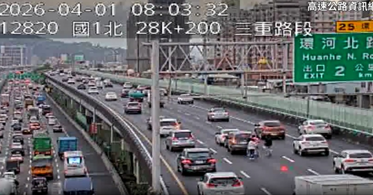國1高架北向28.1公里處環北- 五股轉接道路段今(1日)早上07:58發生追撞車禍,造成後方車流大回堵,行車時速約剩30公里左右。